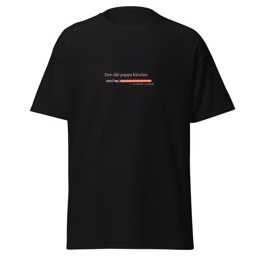 Den här t-shirten fångar ögonblicket när sanningen slår till – med en galaktisk twist. Perfekt för pappor, blivande pappor eller alla med mörk humor och kärlek för klassiska filmreferenser. Funkar lika bra på familjemiddagen som på jobbet när du vill dra ett subtilt (eller inte så subtilt) skämt. Ett plagg som garanterat väcker igenkänning och skratt – även från de som inte vill erkänna det.