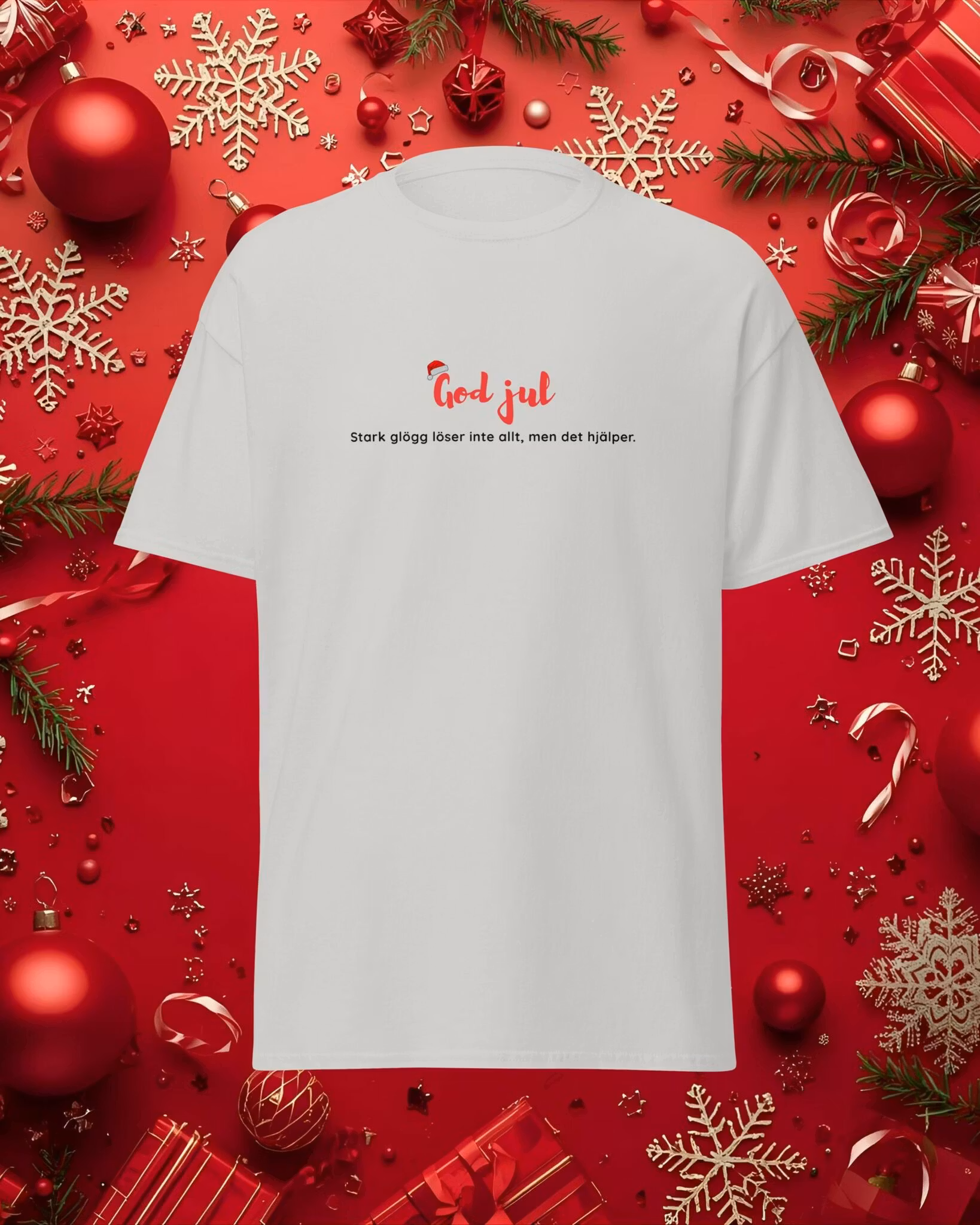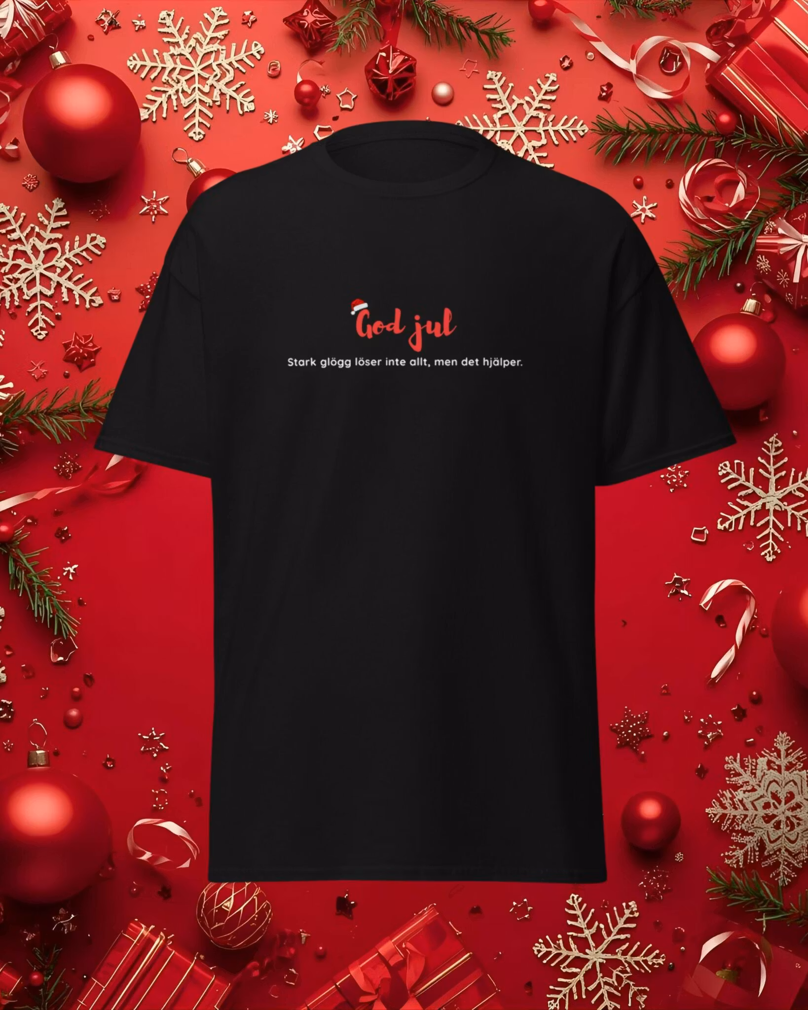 När decemberkaoset slår till och julstressen är som värst finns det alltid en räddning: stark glögg. Den här t-shirten hyllar livets små flyktvägar och bjuder på ett skratt mitt i julstöket.
