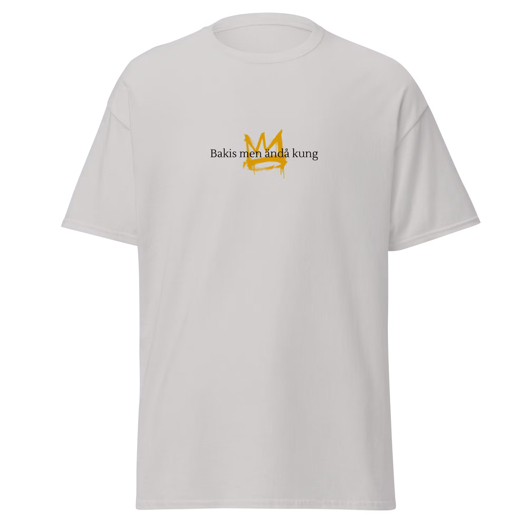 Vaknade du upp med ett leende trots gårdagens bravader? Då är vår Bakis men ändå kung-t-shirt något för dig. Denna humoristiska och bekväma tröja hyllar alla som var festens mittpunkt, även om det var med ett lätt huvud. Perfekt för en avslappnad dag efter festen eller som en rolig present till en vän som alltid levererar på dansgolvet.
