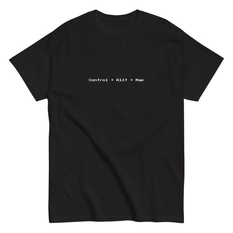 Känner du att du behöver en paus från allt? Då är vår "Control + Allt + Nap"-t-shirt något för dig. Med sitt humoristiska tryck och bekväma passform blir den snabbt din nya favorit. Perfekt för en avslappnad dag hemma, en utekväll eller som en rolig present till någon som alltid har en ursäkt för att inte göra något.