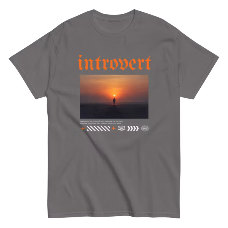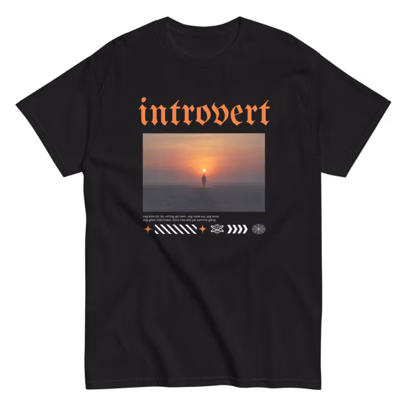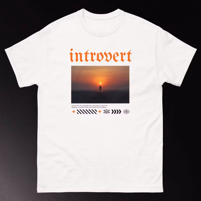 Är du en person som föredrar tystnad framför buller? Då är vår "Introvert"-t-shirt något för dig. Med sitt minimalistiska tryck och bekväma passform blir den snabbt din nya favorit. Perfekt för en avslappnad dag hemma, en utekväll eller som en rolig present till någon som alltid har en ursäkt för att inte göra något.