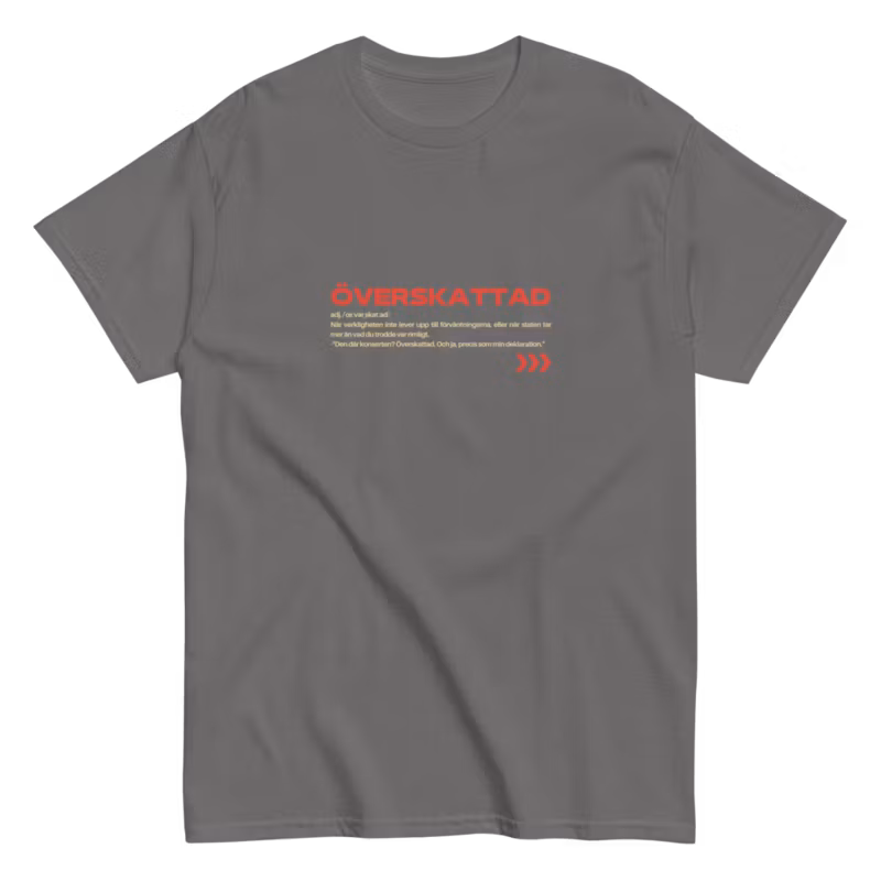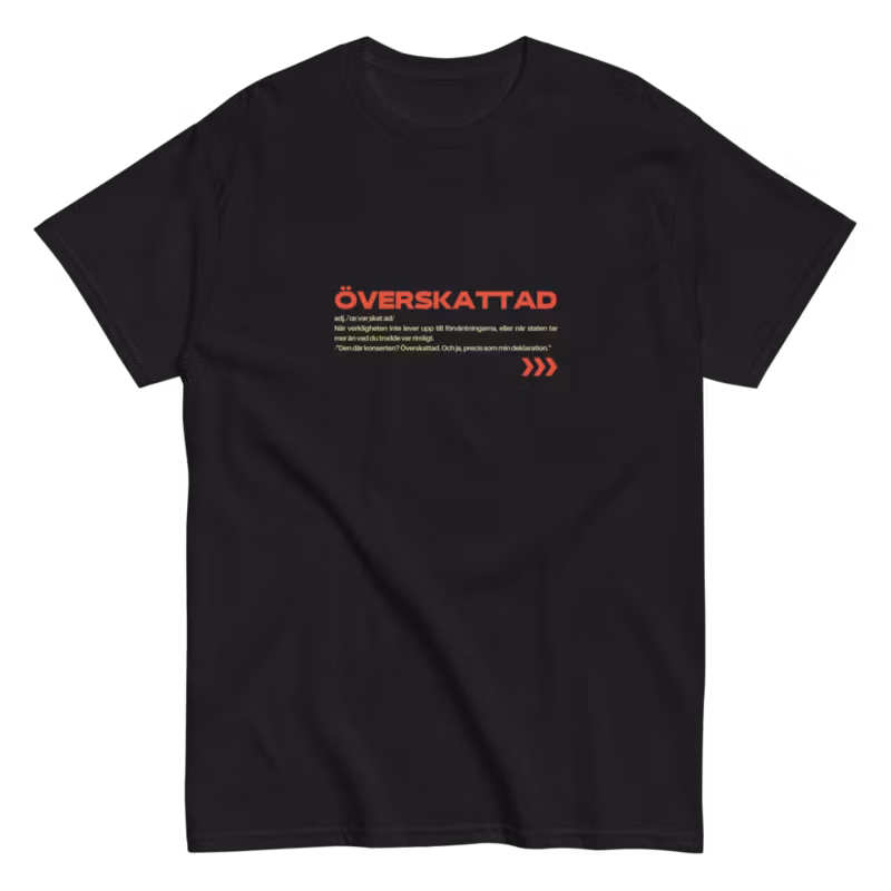 Känner du att du är mer än vad andra tror? Då är vår "Överskattad"-t-shirt något för dig. Med sitt humoristiska tryck och bekväma passform blir den snabbt din nya favorit. Perfekt för en avslappnad dag hemma, en utekväll eller som en rolig present till någon som alltid levererar.