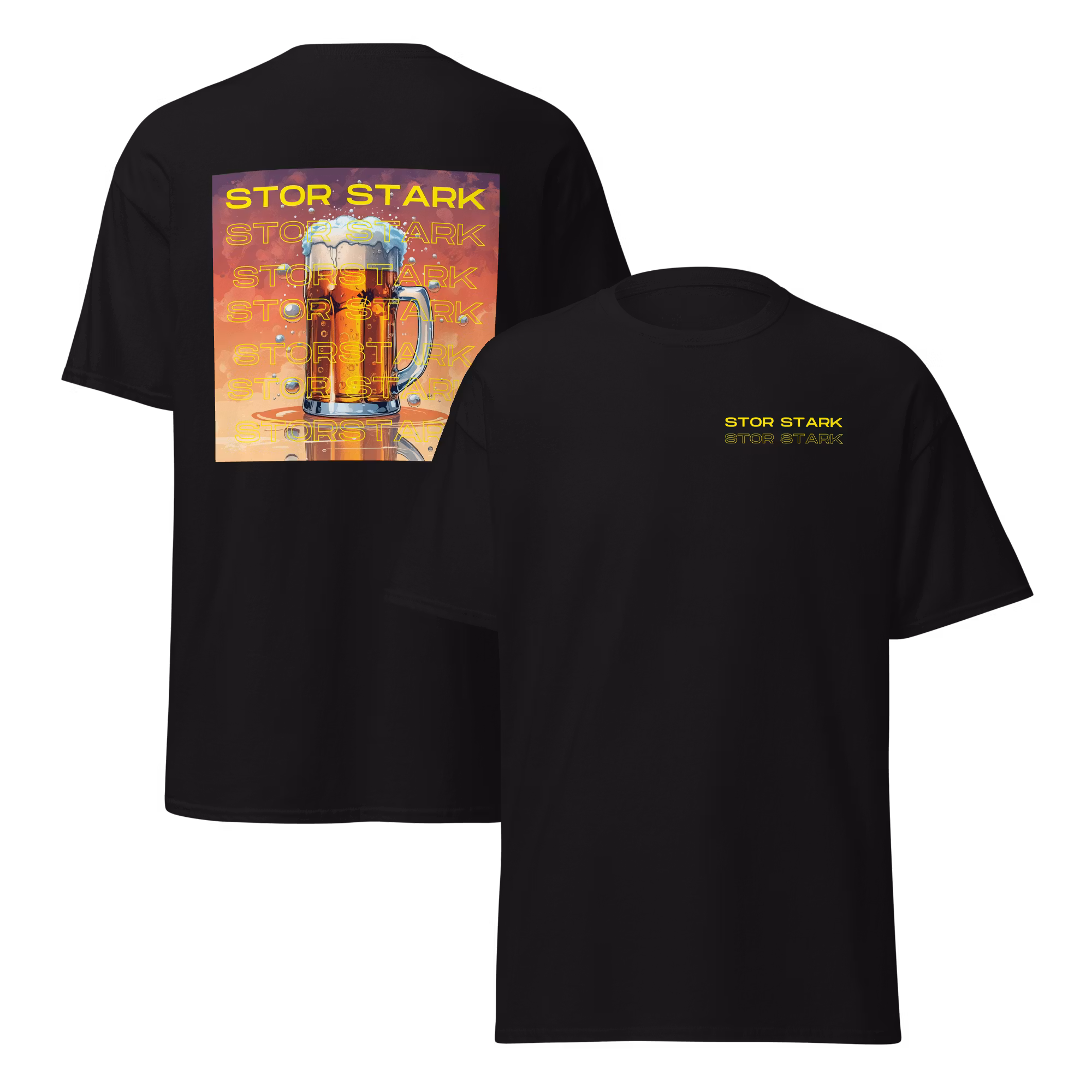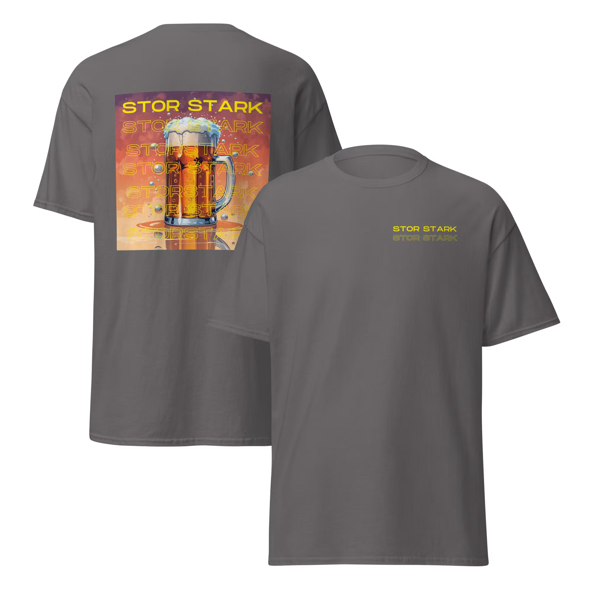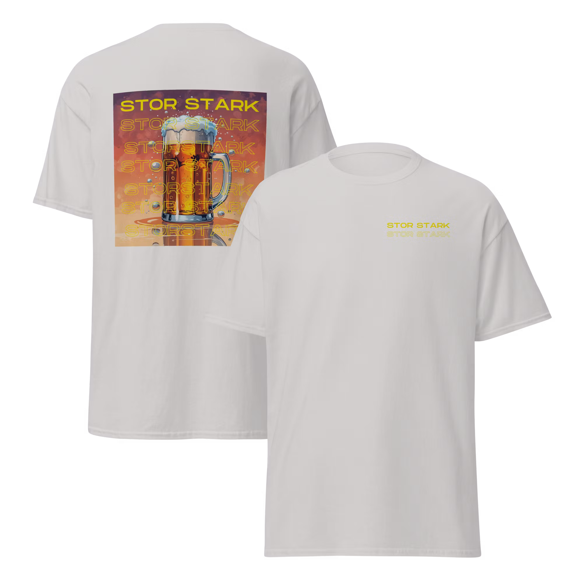 Är du en sann ölälskare? Då är vår "Stor stark (öl)"-t-shirt något för dig. Med sitt humoristiska tryck och bekväma passform blir den snabbt din nya favorit. Perfekt för en avslappnad dag hemma, en utekväll eller som en rolig present till någon som alltid har en kall öl i handen.