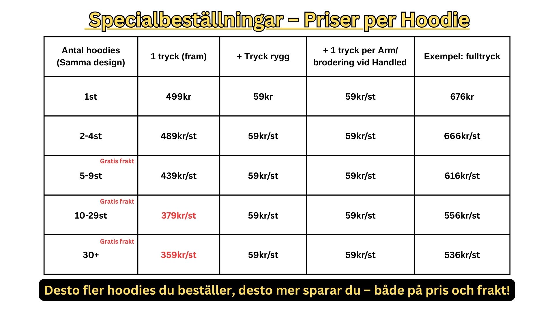 (prislistan är för Hoodies i unisex storlek S-2XL, Frakt tillkommer för beställningar av 1-4 Hoodies)