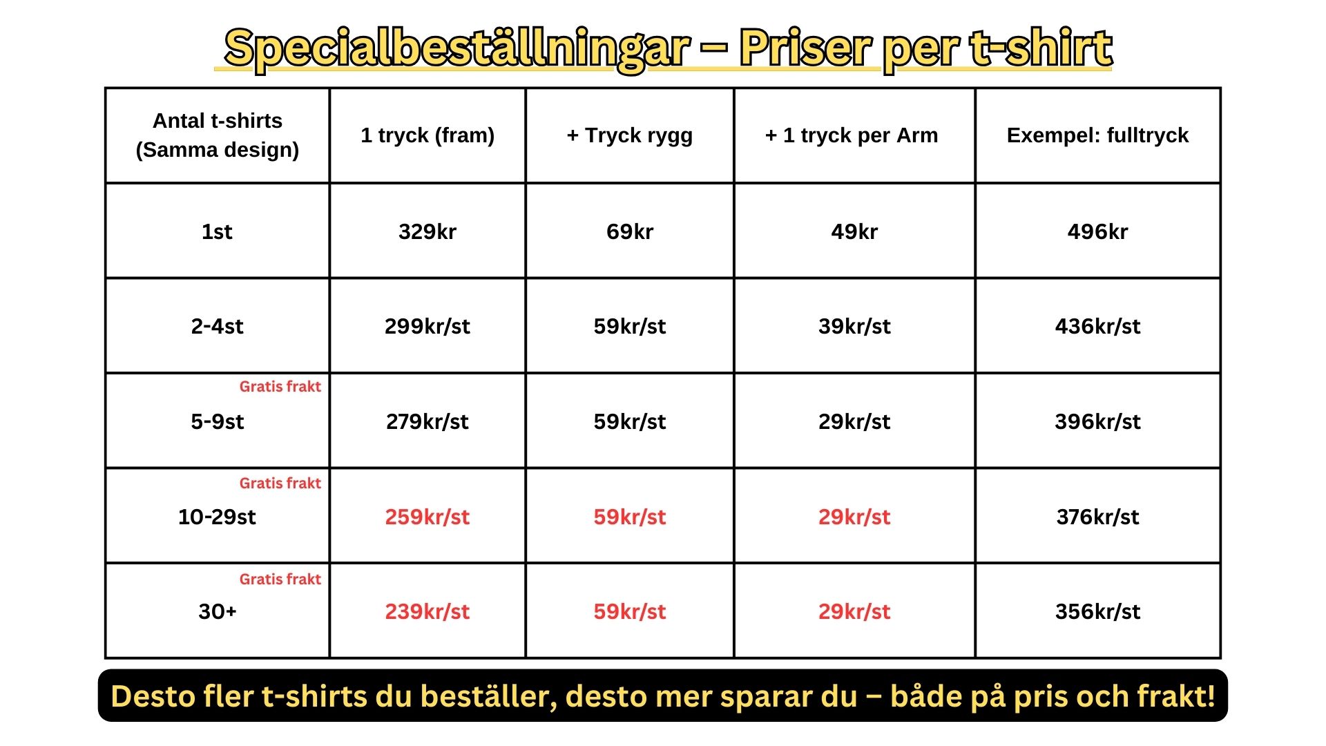 (prislistan är för T-shirts i unisex storlek S-2XL, Frakt tillkommer för beställningar av 1-4 tshirts)